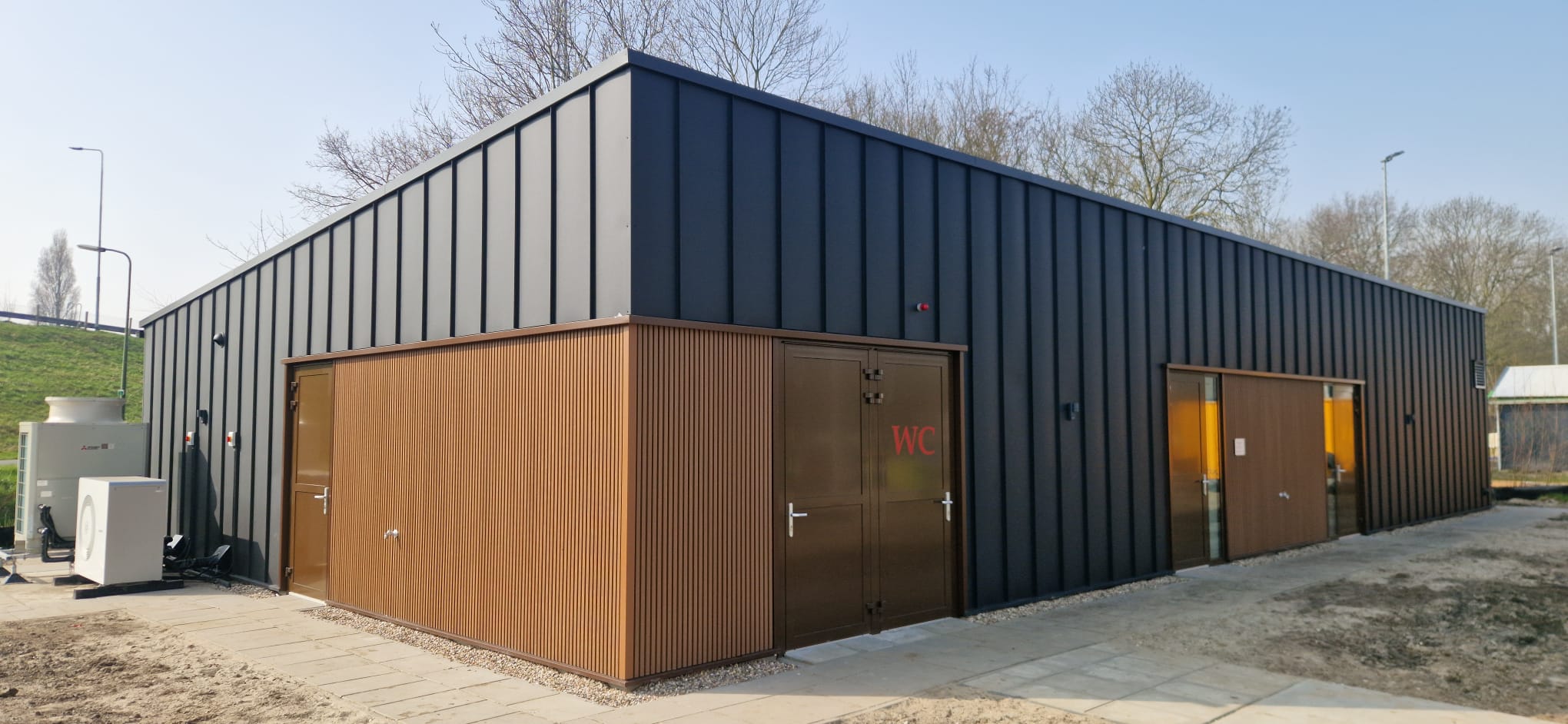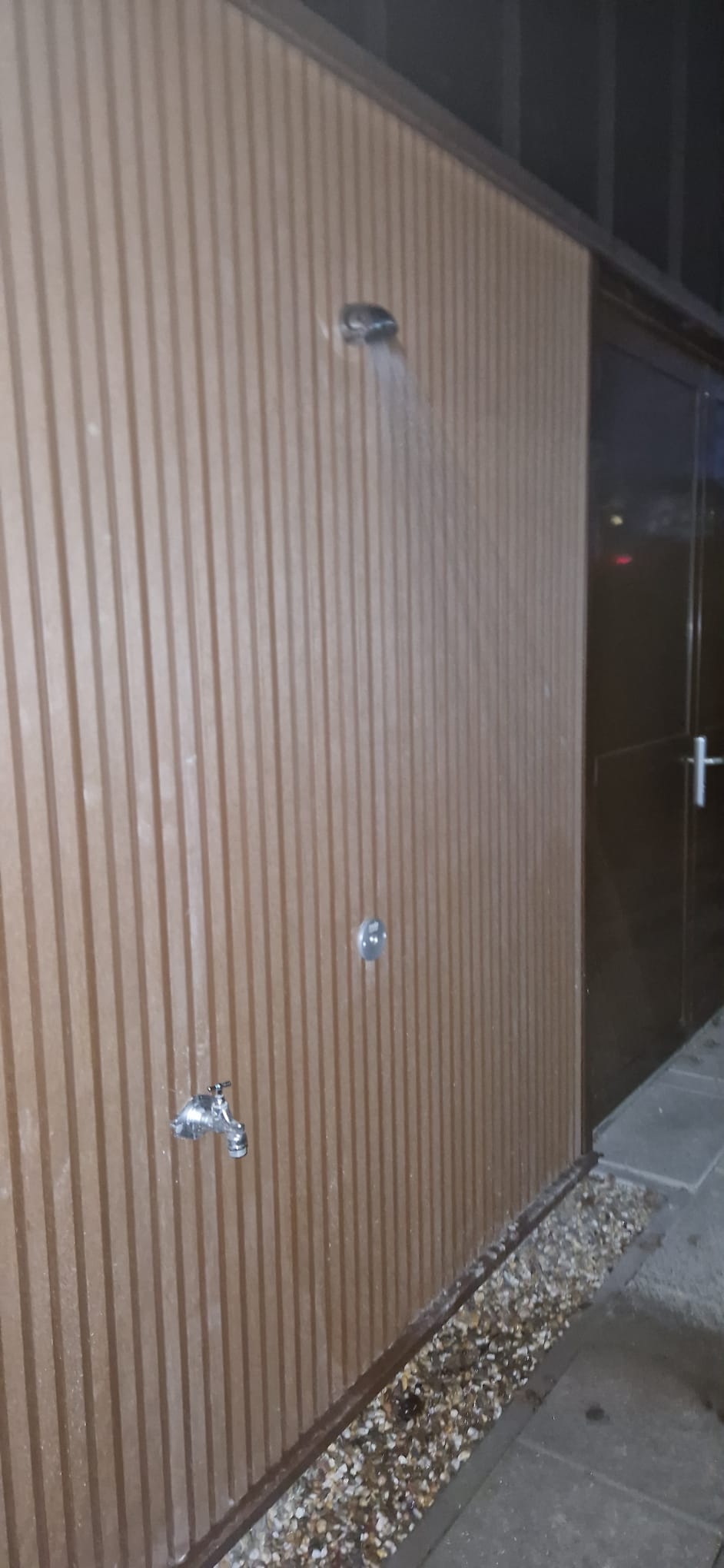 (28-3-26) VOLEVO-beach beschikt vanaf nu over een (warme) buitendouche, wc, water en ruime opslagruimte. Daar zijn we superblij mee. Dank aan de gemeente!